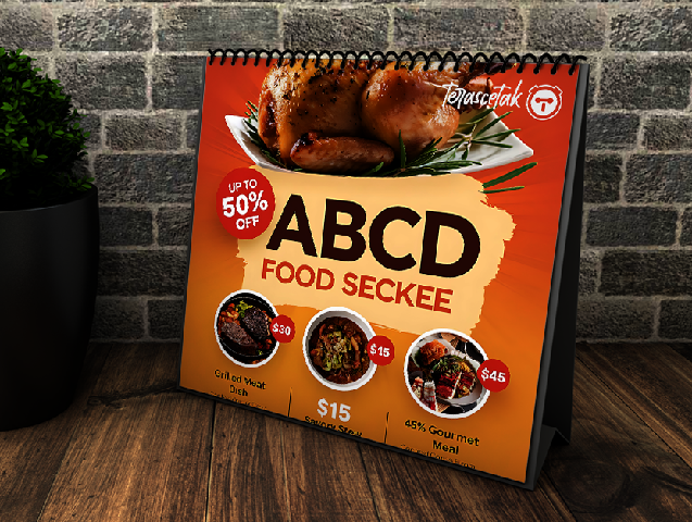 Cetak kalender meja custom dengan logo dan warna brand perusahaan Anda.